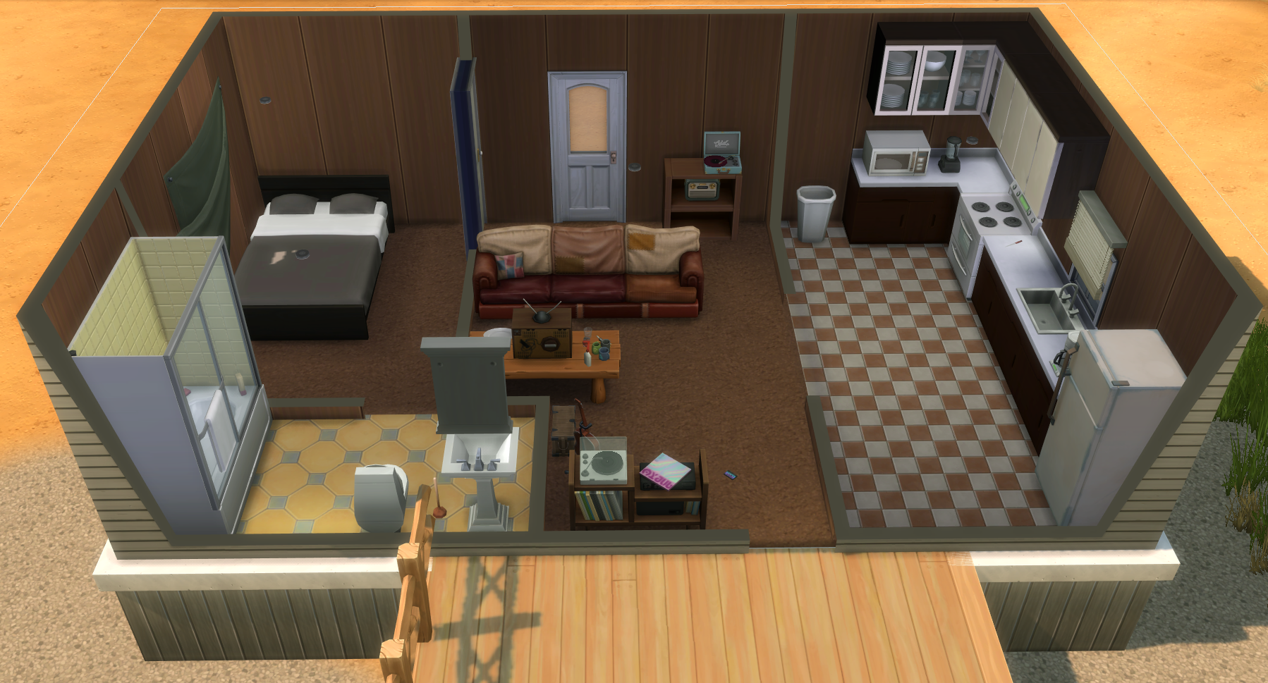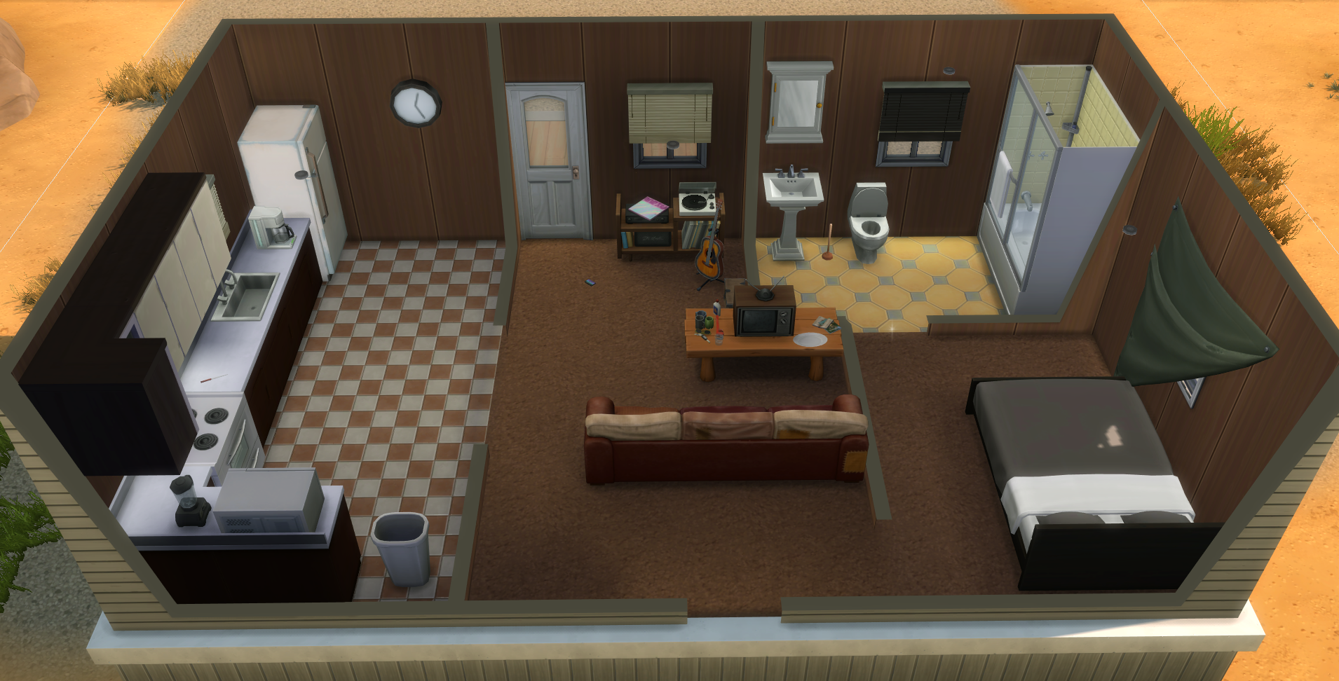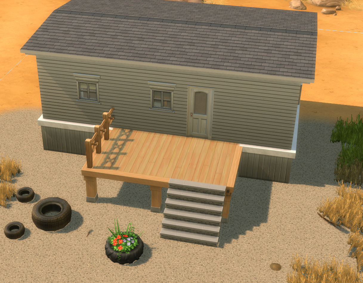 Originally her dad's, Meranda resides in a little trailer in a trailer park on the north outskirts of Dogtrot. It has two bedrooms, a utility room, livingroom/kitchen, and one bathroom. Has a sizable front porch with a swing. (I will include a SIMS 4 Model soon.)Elsewhere
