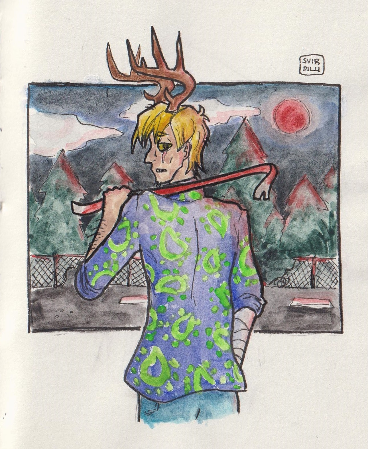 This was a wonderful surprise drawing made for me from a friend from a Beetlejuice roleplay server. As is wont to happen, the Beetlejuice I played slowly morphed into entirely his own person soI just made him into an OC at that point. This drawing was made for me right on that cusp so this is technically the first drawing of Larry to exist.