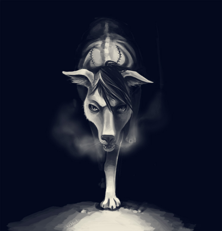 This portrait of Deuteronomy is one of my top five pieces of art I've ever gotten. It captures her energy very well and I adore the dynamic pose. The smoky breath is so eerie along with the way she emerges from the darkness of the fighting ring.